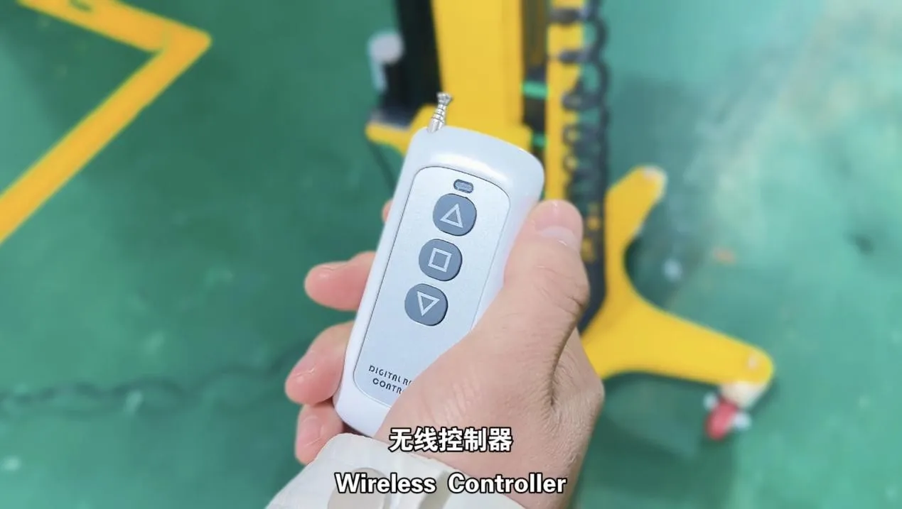 من خلال وحدة التحكم في صندوق التحكم الكهربائي إلى جهاز التحكم عن بعد اللاسلكي أو السلكي للتحكم في المحرك الكهربائي ورفع اللعب ؛ يمكن تشغيل الوضع السلكي عن طريق التحكم في الأزرار الموجودة على المقبض ، لاسلكيًا من خلال جهاز التحكم عن بعد المطابق للعمل.